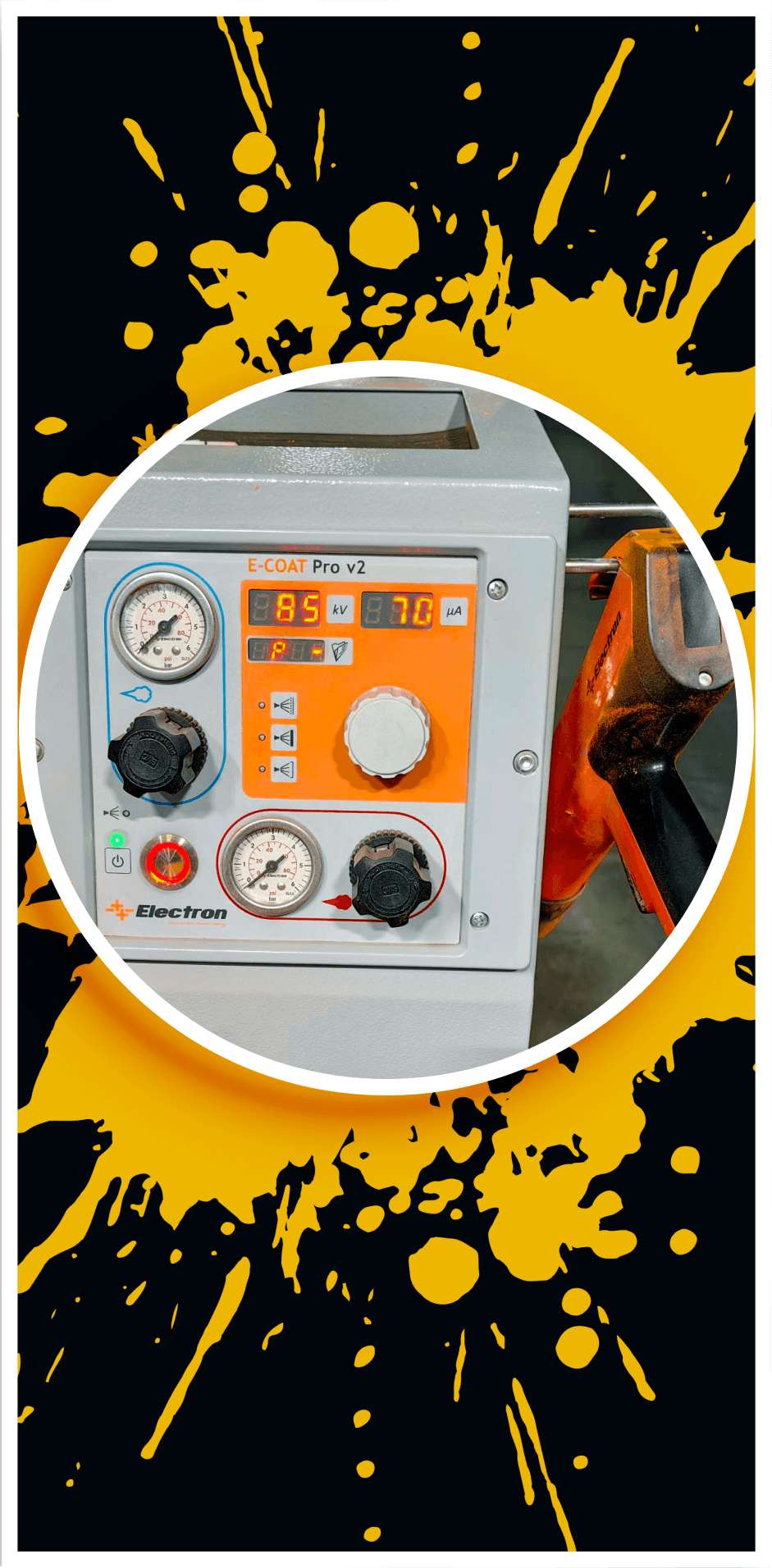 Мы красим современными установками Electron, которые позволяют наносить порошок даже на сложные и труднодоступные поверхности, обеспечивая равномерное покрытие на всей поверхности изделия